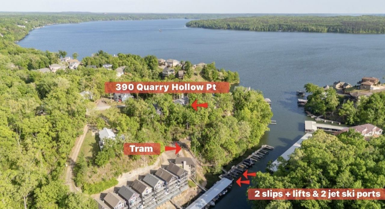 SIMPLY STUNNING - Room to gather. Space to play. Views to LOVE! Beautiful 4BR 4.5BA with breath taking views of Pickwick Lake, with all the right features for simple, fun, and stress-free lake days! Designed for both relaxation & entertaining this home features 2 boat slips with lifts, 2 jet ski ports, and a spacious garage (x2) for all your lake toys. Downstairs you will LOVE the large multi-purpose living room with bunk beds for additional sleeping - perfect for accommodating a crowd. This home truly fits the rhythm of lake living - settle in and soak up every sunny moment. Located on Quarry Hollow Pt: comfortable, convenient, and ready to be enjoyed. CALL TODAY - You're going to love it!