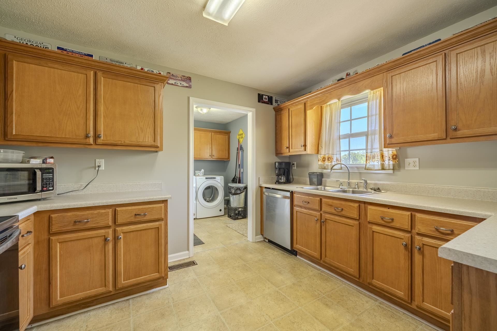 This charming home is located just outside the city limits and offers great potential! It features 3 bedrooms and 1.5 bathrooms and sits on nearly an acres of land. The flooring includes a mix of hardwood, vinyl, and carpet throughout the house. The eat-in kitchen comes fully equipped with all appliances, including a washer and dryer. Additionally, there is a metal 24x26 workshop, as well as 2 other metal storage buildings. Back deck for entertaining and fencing. Please note that the master bathroom will need flooring and wall finishing. Don't miss out on the opportunity to make this home yours!